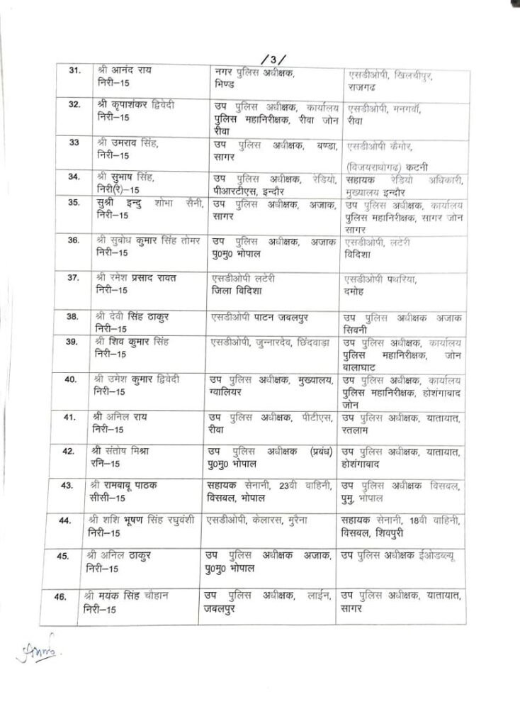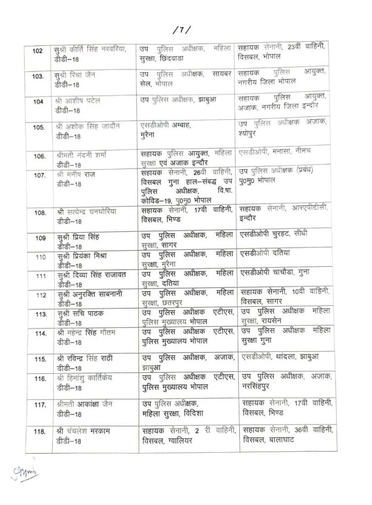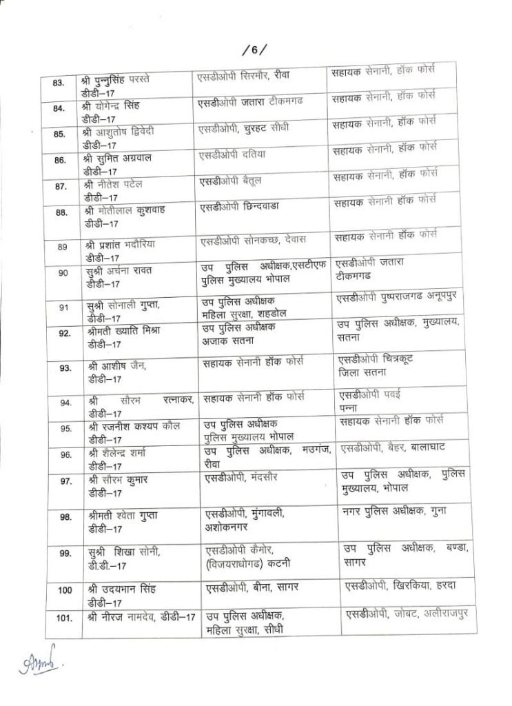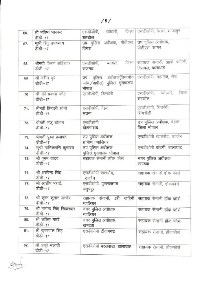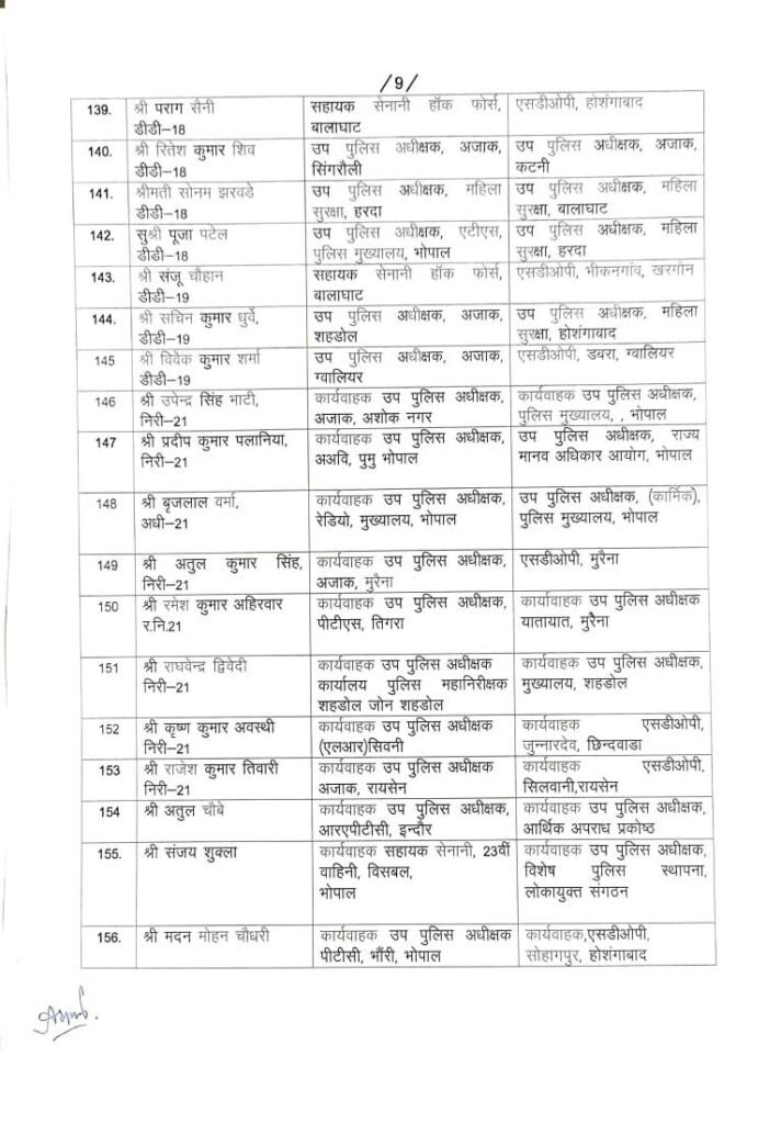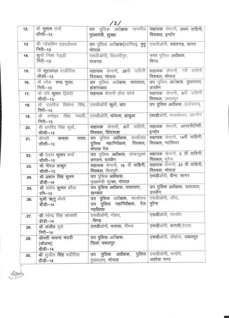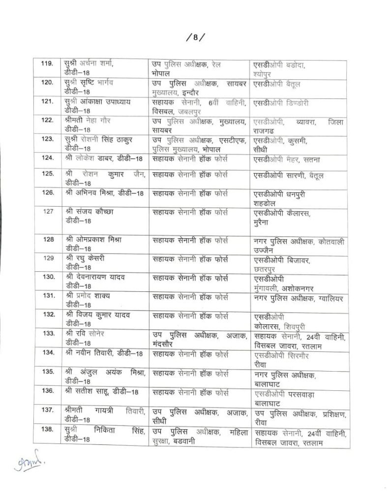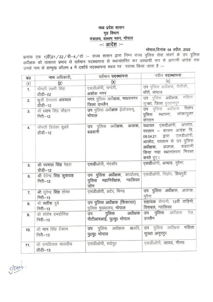 167 DSP/SDOP की तबादला सूची हुई जारी…गृह विभाग ने देर रात जारी की सूची..