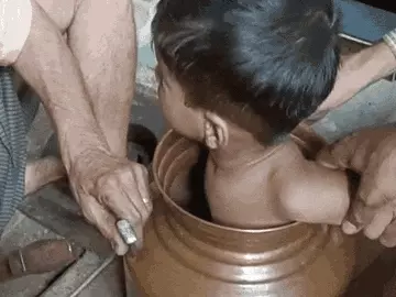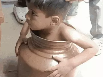 सागर में दो साल का बच्चा तांबे के घड़े में फंस गया। वह खेलते समय घड़े में जाकर बैठ गया। उसके पैर और कमर तक का हिस्सा घड़े अंदर चला गया, जबकि सिर और हाथ बाहर रह गया। घड़े का मुंह संकरा होने से बच्चा बाहर नहीं निकल पा रहा था।