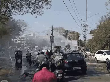 भोपाल में सड़क पर फूटा 30 फीट ऊंचा फव्वारा