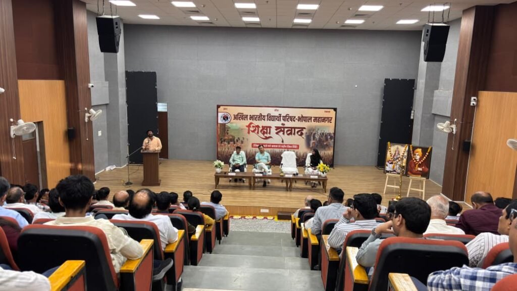 भोपाल। अखिल भारतीय विद्यार्थी परिषद (अभाविप) द्वारा राजधानी में ‘शिक्षा में उभरते नए आयाम एवं राष्ट्रीय शिक्षा नीति’ विषय पर एक गरिमामय शिक्षा संवाद कार्यक्रम का आयोजन किया गया। इस अवसर पर शिक्षाविदों ने भारतीय मूल्यों पर आधारित आधुनिक शिक्षा प्रणाली पर जोर दिया।