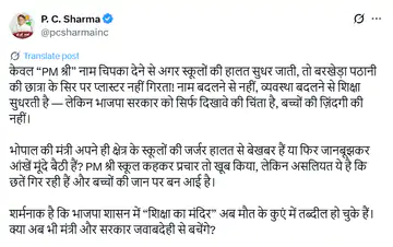 कांग्रेस ने सरकार पर साधा निशाना पूर्व मंत्री पीसी शर्मा ने इस घटना को लेकर सरकार पर निशाना साधा है। उन्होंने सोशल मीडिया अकाउंट X पर लिखा –