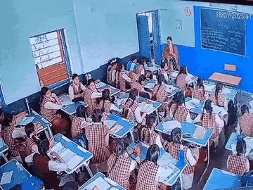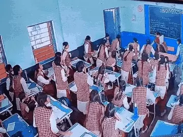 वीडियो में दिख रहा है कि क्लास चल रही है। टीचर खड़े होकर बच्चों को पढ़ा रही है। इसी दौरान अचानक छत का प्लास्टर उखड़कर नीचे आता है, जो सबसे आगे की रो में बैठी दो छात्रा के सिर पर गिरता है।