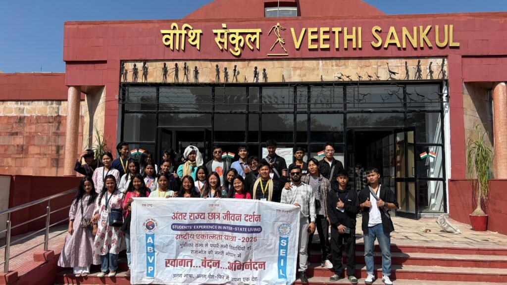 भोपाल। अखिल भारतीय विद्यार्थी परिषद (ABVP) द्वारा आयोजित SEIL यात्रा (Student Experience in Inter-State Living) के अंतर्गत पूर्वोत्तर भारत से आए प्रतिनिधियों ने भोपाल में पहले दिन द्रोणाचल योद्धस्थल, मध्यप्रदेश स्टेट हैंगर, मध्यप्रदेश फ्लाइंग क्लब एवं पीपल्स मॉल का भ्रमण किया। SEIL यात्रा के प्रतिनिधि कल रात भोपाल पहुंचे थे।