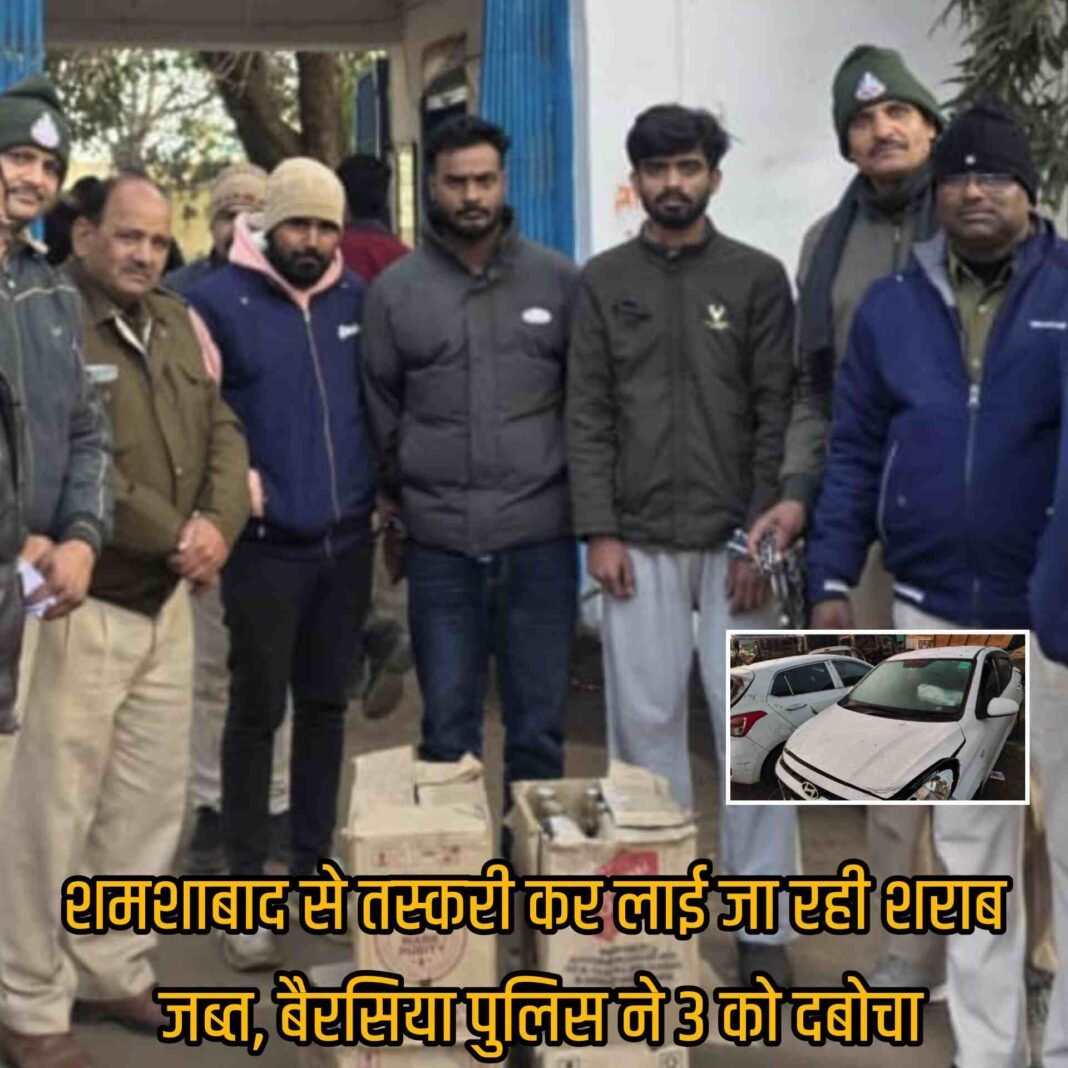 भोपाल देहात के बैरसिया क्षेत्र में अवैध शराब तस्करी के खिलाफ अभियान चलाते हुए बैरसिया पुलिस ने मुखबिर की सूचना पर घेराबंदी कर दो कारों को पकड़ा है। पुलिस ने मौके से तीन आरोपियों को गिरफ्तार कर करीब 13 लाख रुपये से अधिक का मशरूका जब्त किया है।