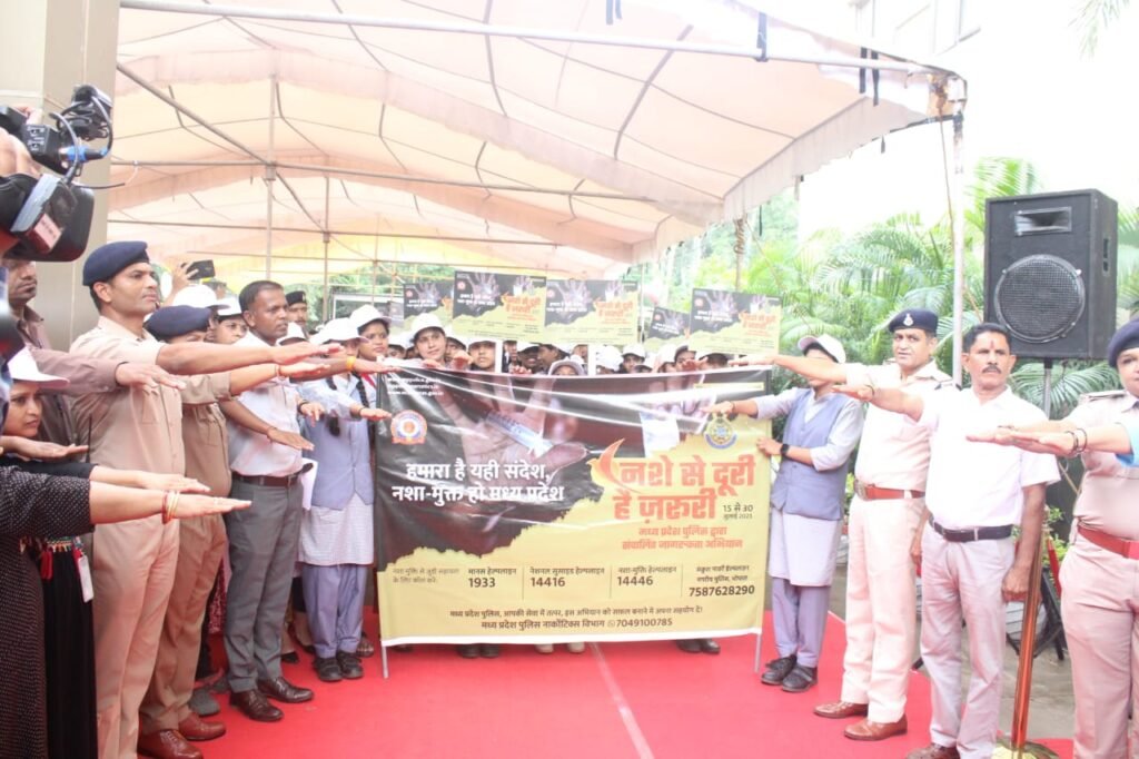 मध्य प्रदेश में पुलिस महानिदेशक (डीजीपी) कैलाश मकवाना ने नशे के खिलाफ ‘नशे से दूरी है जरूरी’ नाम के अभियान की 15 से 30 जुलाई शुरुआत की है | डीजीपी के निर्देश के बाद प्रदेश स्तर पर पुलिस द्वारा नशे से दूरी है जरूरी अभियान के तहत जागरूकता रैली निकालकर समाज और युवाओं को जागरूक किया जा रहा है | इसी क्रम में भोपाल पुलिस कमिश्नर हरिनारायण चारी ने पुलिस कमिश्नर कार्यालय से नशे से दूरी है जरूरी अभियान की जागरूकता रैली को हरी झंडी दिखाकर रवाना किया | इस अभियान और रैली का उद्देश्य समाज और युवाओं में बढ़ती नशे की लत को रोकना है | इस अवसर पर भोपाल के चारों जोन के डीसीपी और एडिशनल डीसीपी समेत स्कूली छात्र-छात्राएं मौजूद रहे |