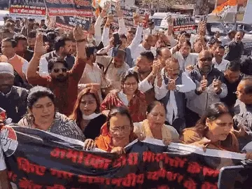 भोपाल के बोर्ड ऑफिस चौराहे पर कांग्रेस कार्यकर्ताओं ने अमेरिका और केंद्र सरकार के खिलाफ प्रदर्शन किया। कार्यकर्ता हाथों में तख्तियां लिए नारेबाजी करते नजर आए। तख्तियों पर लिखा था— ‘हर हिंदुस्तानी का स्वाभिमान यही, न्याय दो, जंजीर नहीं’ और ‘हथकड़ियों में कैद भारत का युवा, 56 इंची सीना कहां गया?’