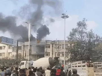 कई किमी दूर से दिखा धुआं बिल्डिंग की आग का धुआं कई किलोमीटर दूर से भी दिखाई दे रहा था। इसके चलते चौराहे पर बड़ी संख्या में लोगों की भीड़ भी इकट्‌ठा हो गई।