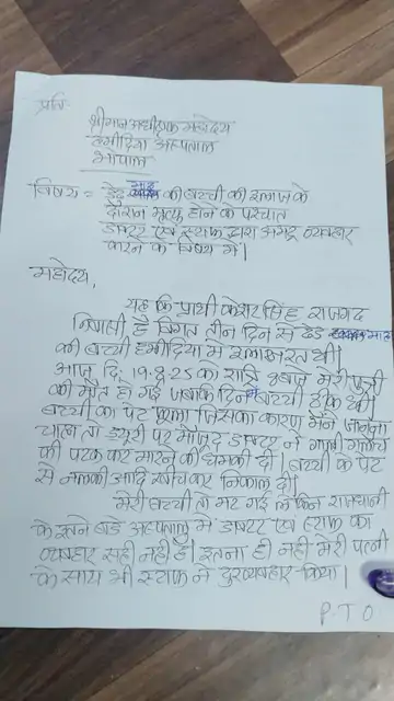 राजगढ़ के मोतीपुरा गांव निवासी ढाई महीने की प्रियंका ऑपरेशन से जन्मी थी। पहले उसका निजी अस्पताल में इलाज चल रहा था। तीन दिन बाद हमीदिया अस्पताल में भर्ती कराया गया था। परिवार का दावा है कि 19 अगस्त 2025 को दिन में बच्ची की स्थिति सामान्य थी, लेकिन पेट फूलने की शिकायत के बाद जब उन्होंने कारण पूछा तो ड्यूटी पर मौजूद चिकित्सक उनसे उलझ गए। बच्ची के पेट में लगी नली भी निकाल दी। परिजनों के मुताबिक विवाद के दौरान उनके साथ बदसलूकी की गई और मारने की धमकी भी दी गई।