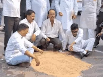 भोपाल में केंद्रीय कृषि मंत्री शिवराज सिंह चौहान के सरकारी आवास के सामने किसान प्रदर्शन कर रहे हैं। किसानों के साथ प्रदेशाध्यक्ष जीतू पटवारी भी अपने साथ गेहूं की बोरी लेकर पहुंचे।