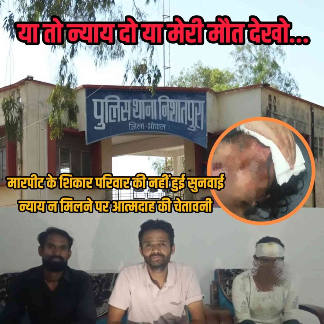 भोपाल | राजधानी के निशातपुरा इलाके में लगता है कि कानून का खौफ खत्म और रसूख का राज शुरू हो चुका है। न्यू जेल रोड स्थित कमलेश नगर में एक पेट्रोल पंप संचालक की गुंडागर्दी और पुलिस की संदिग्ध भूमिका ने एक पूरे परिवार को आत्महत्या की कगार पर धकेल दिया है। पीड़ित ने एक दर्दनाक वीडियो जारी कर पुलिस पर गंभीर आरोप लगाए हैं। जानकारी के मुताबिक, रवि शंकर त्रिगुणायत और उनके भाई गौतम त्रिगुणायत क्षेत्र के निवासी हैं। पड़ोस में रहने वाले पेट्रोल पंप संचालक कमल पाल पर आरोप है कि वे नशे की हालत में गौतम के साथ अभद्रता और गाली-गलौज कर रहे थे। जब रवि की पत्नी ने इस व्यवहार का विरोध किया, तो मामला और बिगड़ गया। प्रत्यक्षदर्शियों और सूत्रों के अनुसार, विरोध से आगबबूला होकर कमल पाल ने कथित तौर पर तीन-चार अन्य युवकों को बुला लिया। इन लोगों ने त्रिगुणायत परिवार के साथ जमकर मारपीट की। हमले की क्रूरता का अंदाजा इस बात से लगाया जा सकता है कि आरोपियों ने घर की एक युवती के सिर पर भी डंडे से वार किया, जिससे वह लहूलुहान हो गई।