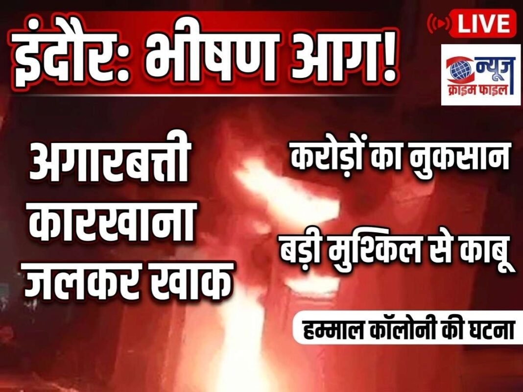 इंदौर। शहर के हम्माल कॉलोनी इलाके में सोमवार तड़के एक अगरबत्ती कारखाने और गोदाम में भीषण आग लग गई। सुबह करीब 5 बजे लगी इस आग ने कुछ ही देर में विकराल रूप धारण कर लिया, जिससे इलाके में अफरा-तफरी मच गई। गनीमत रही कि हादसे में कोई जनहानि नहीं हुई।
