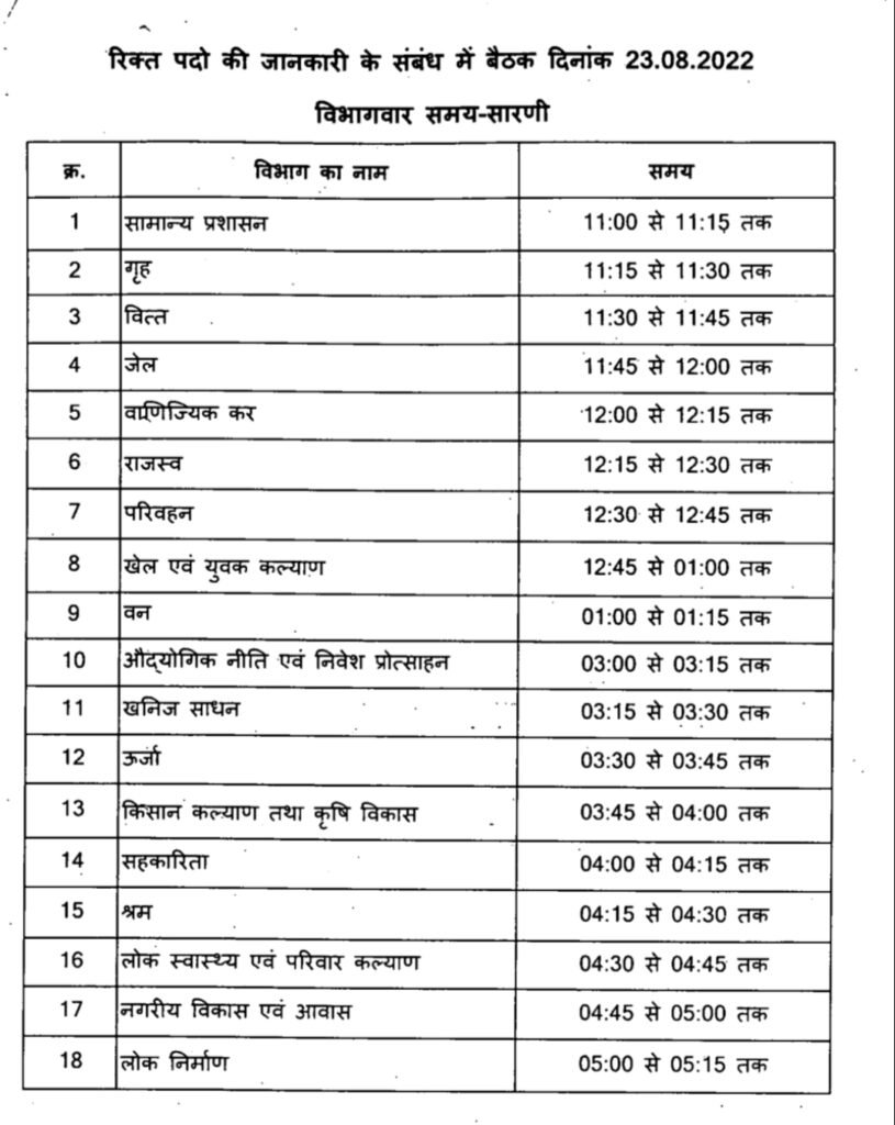 शासकीय विभागों में रिक्त पदों की पूर्ति हेतु विभागों की बैठक होगी आयोजित