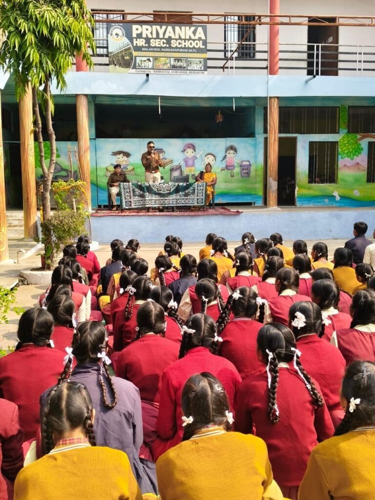 इसी कड़ी में, आज 20/11/25 को एसडीओपी (SDOP) नर्मदापुरम जितेंद्र पाठक ने महत्वपूर्ण भूमिका निभाई। उन्होंने विंध्यवासिनी स्कूल के कक्षा पाँचवी से बारहवी तक के करीब 150 छात्रों और प्रियंका हायर सेकेंडरी स्कूल के 200 छात्रों को संबोधित किया।
