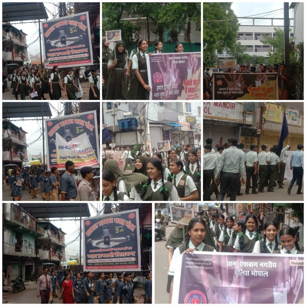 मध्य प्रदेश पुलिस द्वारा में 15 जुलाई से 30 जुलाई तक चलाए जा रहे नशे से है दूरी जरूरी अभियान के तहत जॉन 1 के अंतर्गत थाना ऐशबाग ने इस अभियान में सहभागिता दी | थाना प्रभारी ऐशबाग विजय बहादुर सिंह सेंगर ने बताया थाना क्षेत्र के अंतर्गत आने वाले भोपाल अकैडमी और हिंद कन्वेंट स्कूल के सहयोग से नशा मुक्ति अभियान की रैली निकाली गई | इस रैली का उद्देश्य ताकि समाज में नशे के विरुद्ध जागरूकता फैलाई जाए | वही रैली में स्कूली बच्चों ने हाथ में नशे से है दूरी जरूरी के स्लोगन की तख्ती पड़कर लोगों को जागरूक किया |