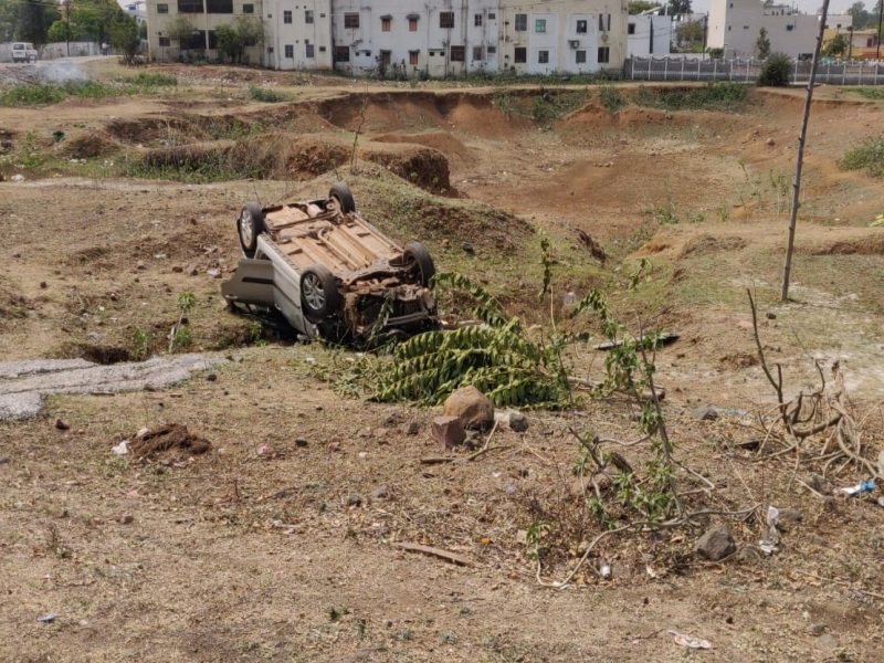 Road Accident in Bhopal: बाइक सवार को टक्कर मारने के बाद खंती में पलटी कार, पांच घायल