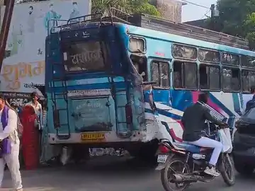 रतलाम में सवारी उतार रही खड़ी बस को पीछे से एक डंपर ने जोरदार टक्कर मार दी। टक्कर से बस के ड्रायवर साइड के पीछे का हिस्सा पूरी तरह से क्षतिग्रस्त हो गया। वहीं डंपर के भी कांच फूट गया। घटना के बाद डंपर चालक डंपर छोड़ भाग गया।