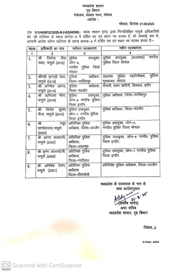 इसी तरह विनोद कुमार मीणा पुलिस उपायुक्त जोन वन इंदौर को एसपी मंदसौर बनाया गया है। एएसपी उज्जैन मयूर खंडेलवाल को पुलिस उपायुक्त जोन 4 नगरीय पुलिस भोपाल की जिम्मेदारी सौंपी गई है। आनंद कलगी अतिरिक्त पुलिस अधीक्षक जबलपुर को पुलिस उपायुक्त जोन 4 नगरीय पुलिस इंदौर बनाया गया है।कृष्ण लाल चंदानी एएसपी ग्वालियर को पुलिस उपायुक्त जोन वन नगरीय पुलिस इंदौर बनाया गया है।