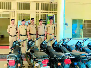 ग्वालियर में बहोड़ापुर थाना पुलिस ने शनिवार-रविवार की दरमियानी रात दो वाहन चोरों को गिरफ्तार किया है, जिनके पास से 8 चोरी की बाइक बरामद हुई हैं। ये दोनों चोर ट्रांसपोर्ट नगर में एक गाड़ी चोरी करने की कोशिश कर रहे थे, तभी गश्त कर रही पुलिस वहां पहुंच गई।