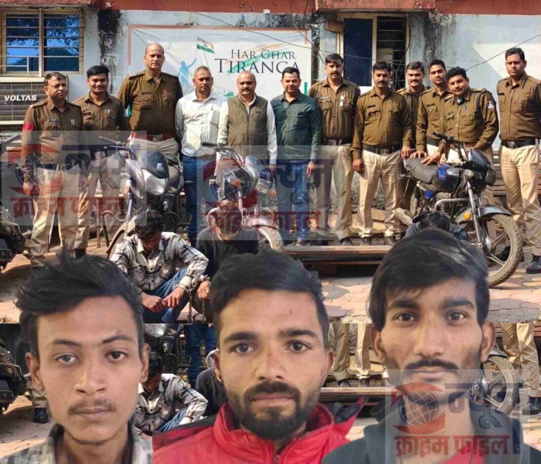 भोपाल के जोन 2 की थाना अयोध्यानगर पुलिस ने शहर में सक्रिय एक शातिर नकबजन गिरोह का पर्दाफाश करते हुए तीन आदतन अपराधियों को गिरफ्तार किया है। पकड़े गए आरोपियों के पास से चोरी की 3 मोटरसाइकिलें और भारी मात्रा में कीमती धातु के सामान सहित कुल 4.50 लाख रुपये का माल बरामद किया गया है।