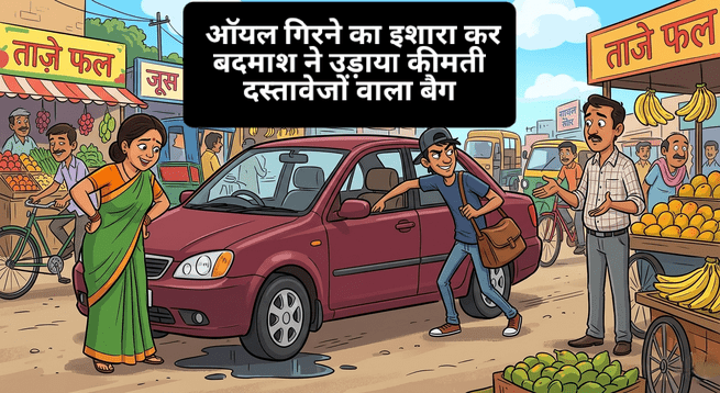 जैसे ही श्वेता कार से उतरकर नीचे देखने लगीं, शातिर बदमाश ने पलक झपकते ही कार में रखा बैग पार कर दिया और मौके से फरार हो गया। पीड़ित के मुताबिक: